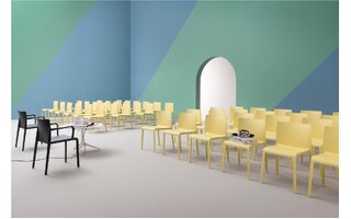Beschreibung: Der Stuhl PEDRALI Volt HB ist für den professionellen Einsatz in Hotels, Gastronomiebetrieben und kommerziellen Außenbereichen konzipiert. Er ist unter anderem mit einer hohen Rückenlehne und Armlehnen ausgestattet, was den Nutzern Komfort bietet.