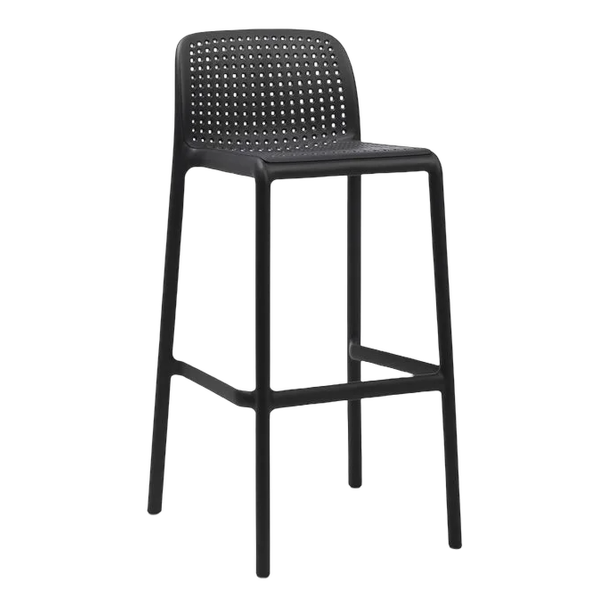 Beschreibung: Der Barhocker Lido ist für den professionellen Einsatz in Gastronomie- und Hotelumgebungen konzipiert, wo Zuverlässigkeit und ästhetische Perfektion entscheidend sind. Er ist aus einteiligem, mit Glasfasern verstärktem Polypropylen hergestellt und mit UV-Schutz behandelt, was hohe Wetterbeständigkeit und eine lange Lebensdauer gewährleistet. Die matte Oberfläche und der perforierte Sitz mit Rückenlehne tragen zu einem modernen Look und optimalem Komfort bei. Geeignet für den Innen- und Außenbereich.